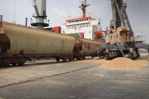 تفريغ باخرة ضخمة تحمل نحو 15 ألف طن من